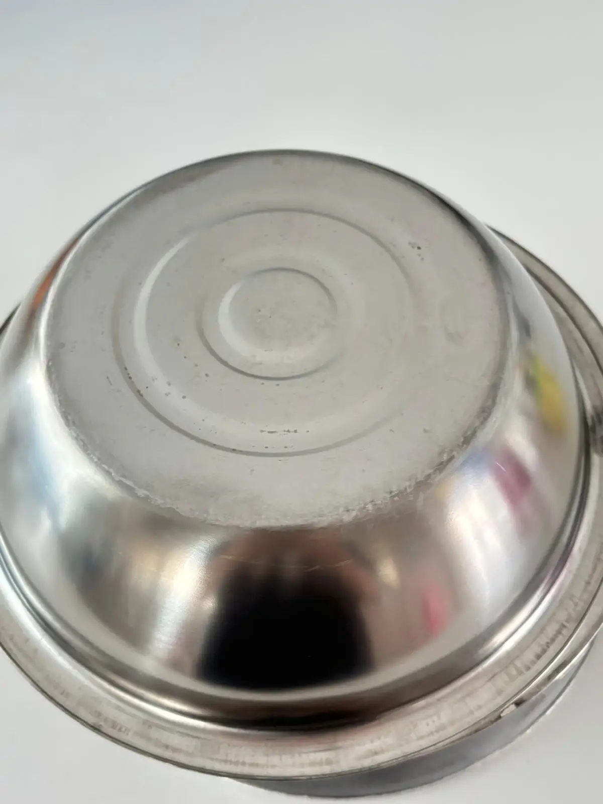 I found the outer bowl came tarnished and it's hard to remove the black stains. I tried to wash it with soap and vinegar but in vain. My plastic gloves turned black every time i washed the bowl.